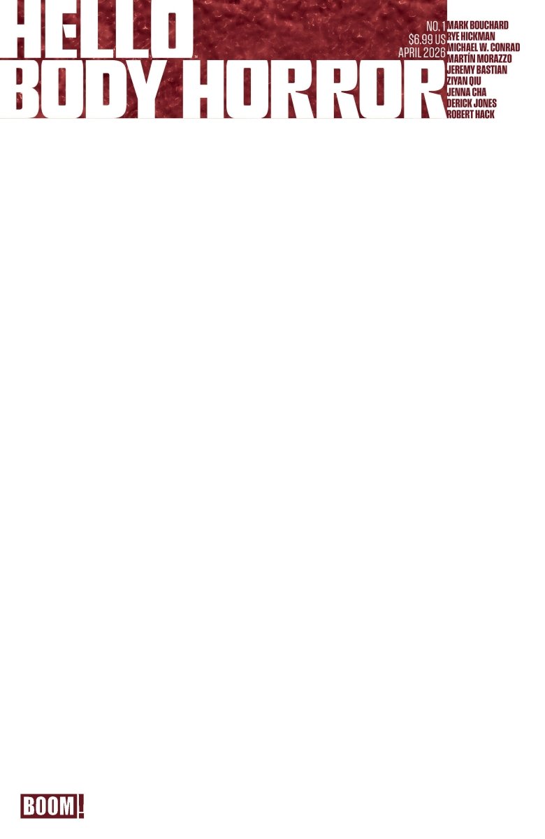 New forms of fear are bursting onto the scene with this newest curation of jaw-breaking talent!Test your nerves and prove your guts with the grossest, squishiest, gruesomest comics in… Hello Body Horror, a fresh collection of spine-cracking tales and stomach-churning terrors!In “Body Positive” by Mark Bouchard and Rye Hickman, a fitness influencer striving for greatness has her mind go where her body cannot follow...yet.In “Minimal Scarring” by indie sensation Derick Jones, a plastic surgeon who caters to the ultra-rich uses what pieces they leave behind to transform himself.Also featuring stories by Michael W. Conrad, Mart n Morazzo, Jeremy Bastian, Ziyan Qiu, Jenna Cha, and Robert Hack for a veritable “Who’s Who” in “Kill U Comics!”