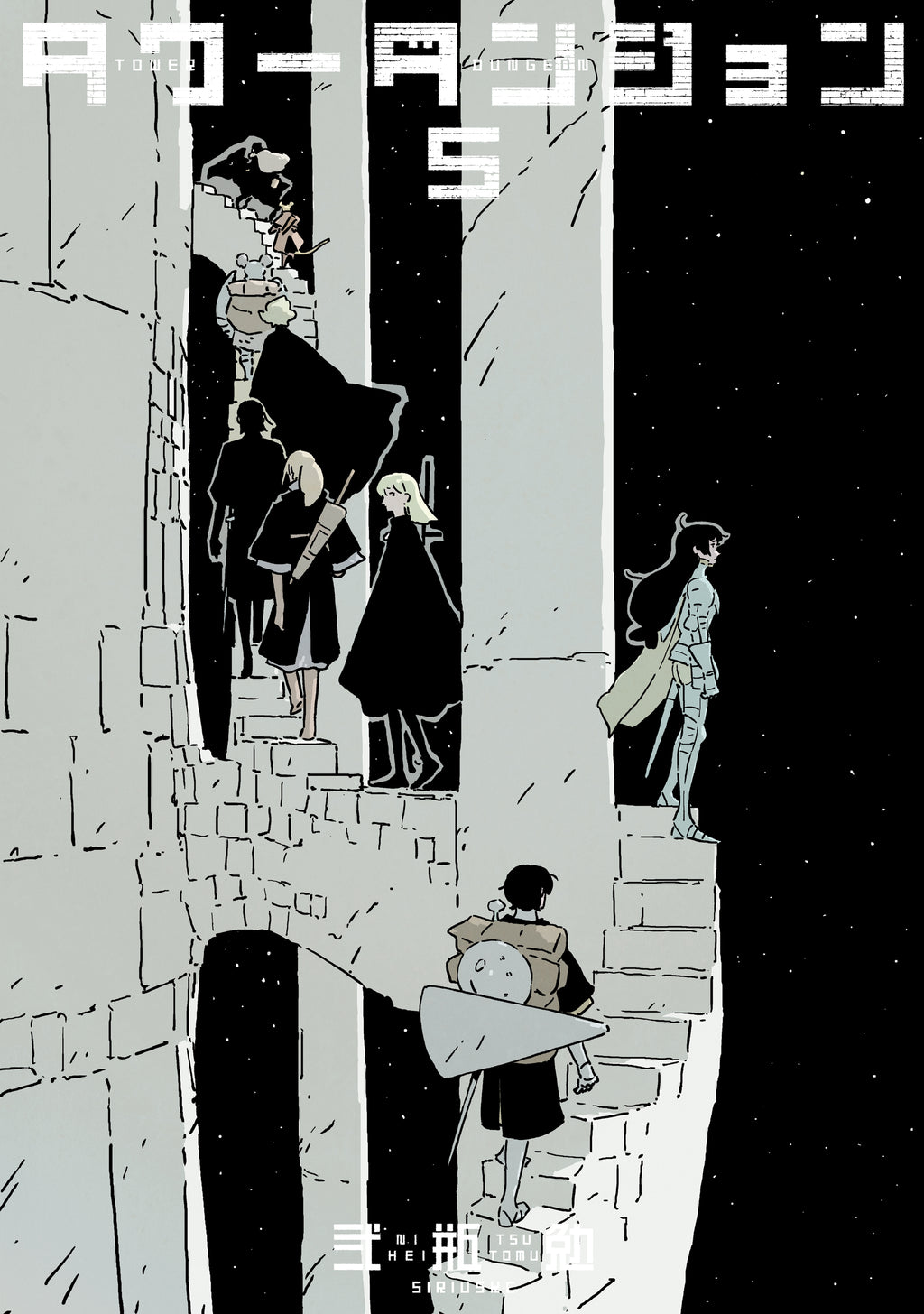 Tsutomu Nihei, master of the mysterious architectural monolith, brings his genius to bear on the fantasy genre for the first time. Having established himself with hit series like Blame! and Knights of Sidonia, he has now created a gritty, dark fantasy world and populated it with evil sorcerors and unique undead horrors. The ingenuous farmboy Yuva must accompany a contingent of knights through the increasingly dangerous floors of massive tower on the way to rescue the princess, Nihei bringing his unique sensibility to bear on a crumbling world of malformed creatures, wounded soldiers, and labyrinthine darkness.An evil necromancer slays the king and carries off his daughter, secreting her in the legendary Dragon Tower. To save the princess, her steadfast Royal Guard assays the stronghold, but the way is blocked by powerful eldritch creatures… So, to supplement their forces in the face of mounting casualties, they press ordinary folks from the surrounding villages into service—including Yuva, a sturdy young farmboy with a strong back but no experience in battle, and only a battered old helm and wooden shield to protect him.Master of science fiction Tsutomu Nihei (Blame!, Knights of Sidonia) turns his unique storytelling voice and architectural eye to fantasy for the first time, offering a dark, gritty tale of swords and sorcery, bravery and adventure, great heroes and ultimate evil. Gird your loins, heft your blade, and enter the Dragon Tower.
